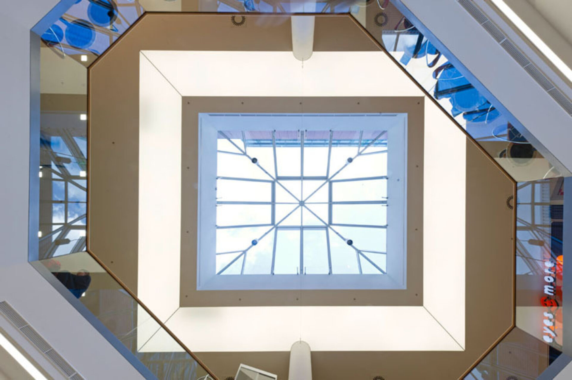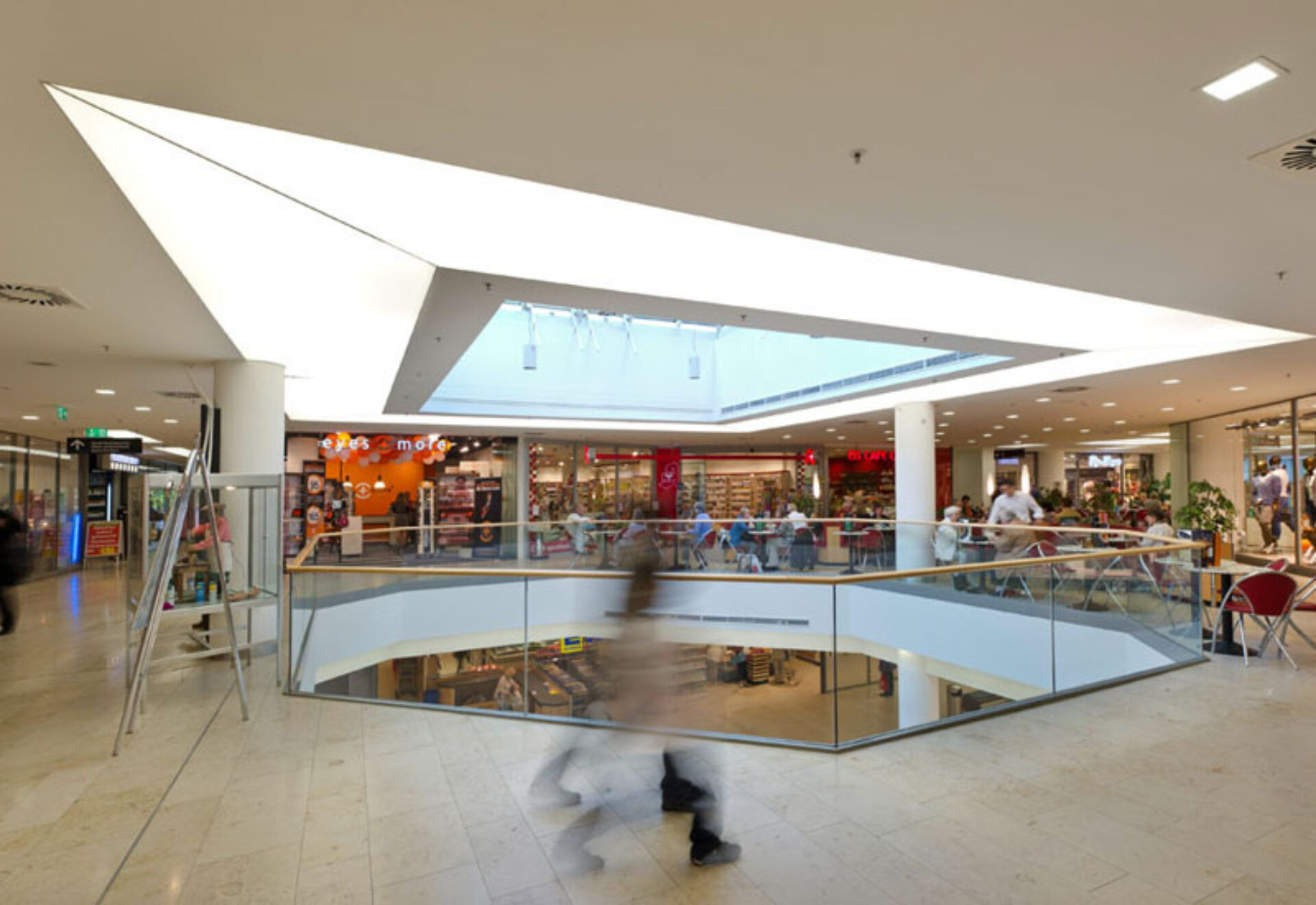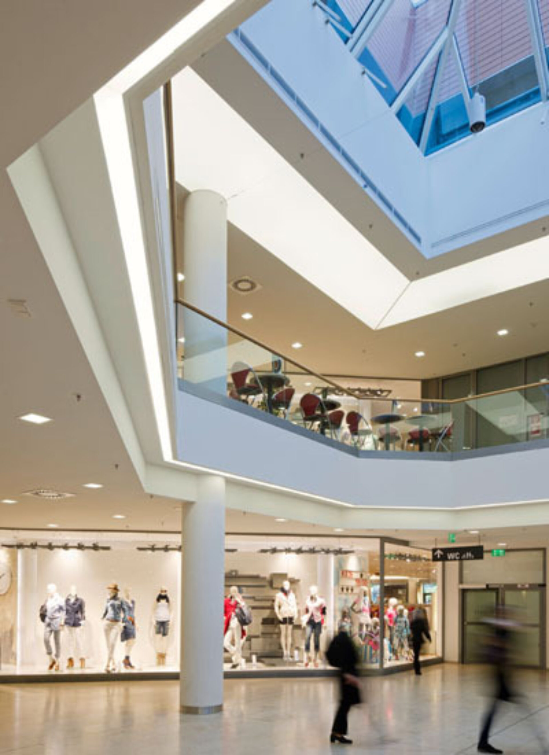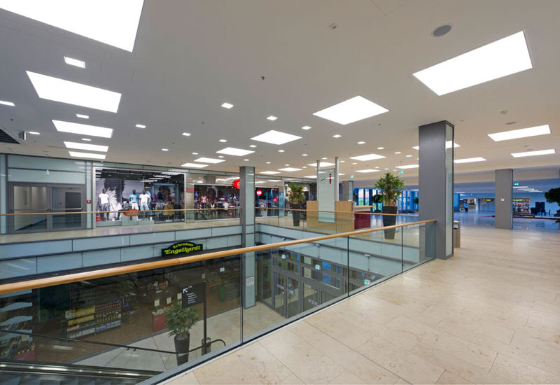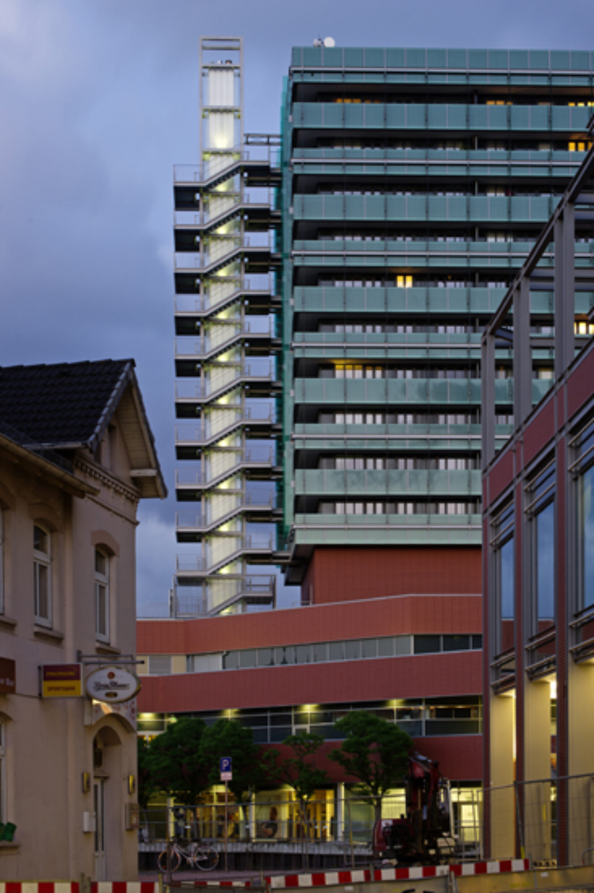 Das Lichtkonzept schließt sämtliche öffentlichen Flächen in der Mall ein. Zusätzlich wurde die gesamte Außenbeleuchtung geplant. Der 14-geschossige Wohnturm wird im Bereich des Fluchttreppenhauses grünlich illuminiert, um die Tagwirkung der Glasschwerter in der Fassade fort zu führen.